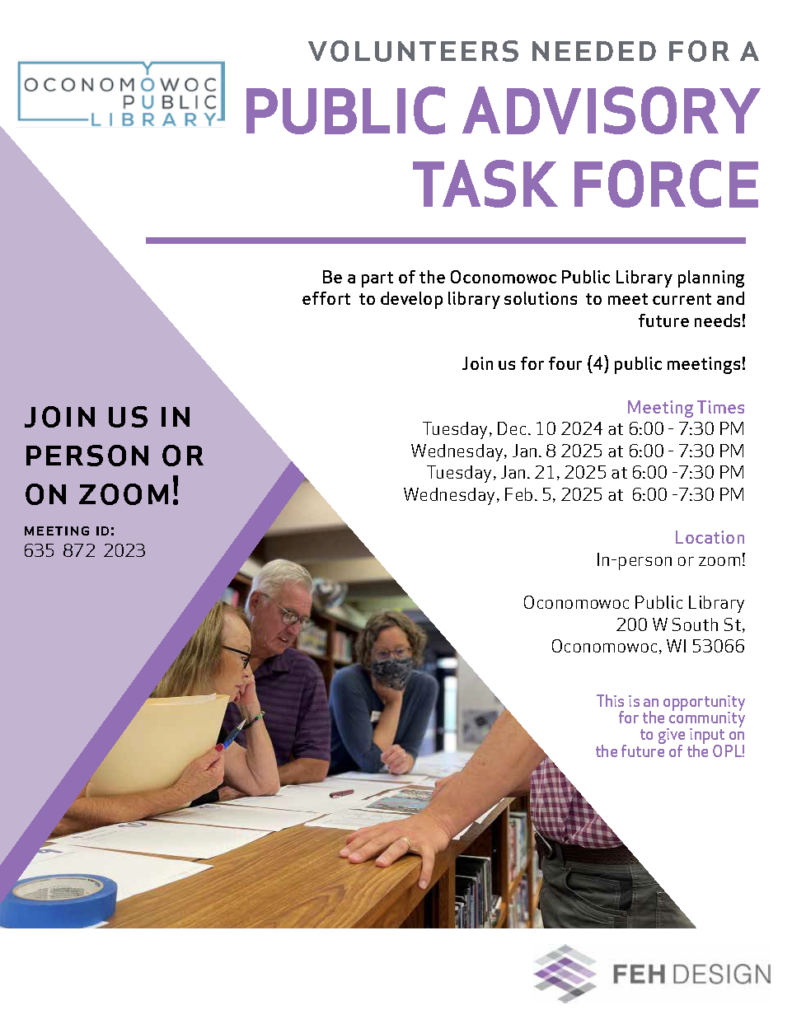 *All meetings will be held in the Oconomowoc Public Library Meeting Room*